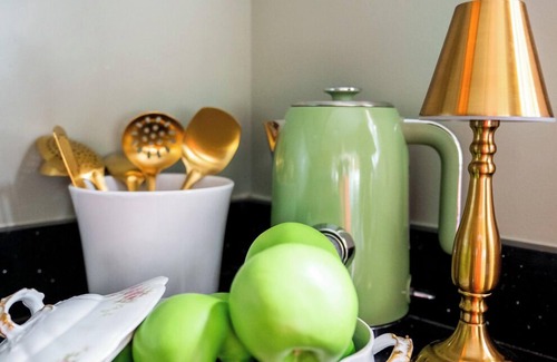 • A bright, vintage-modern kitchen stocked with all essentials for cooking and baking