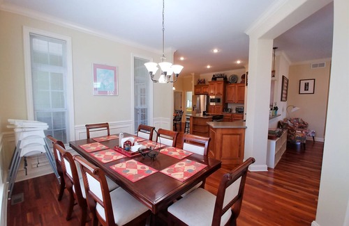 This 3200 square foot house is stepless accessible from the garage. The main floor has no steps or level changes. This house is great for large families. Large finished basement with lots of room for kids to play. Pet friendly with no pet fee. Garage and driveway has parking for 7 vehicles. Level 2 EV charger located in the garage. Driveway can accommodate an RV. There are many bicycles of all sizes to ride around the neighborhood.