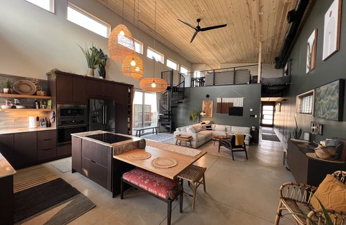 *Take the spiral staircase to the second floor to enjoy a movie or games from the sleeper sofa, or the custom loft hammock suspended above the entry way. Perfect for evening entertaining, the loft also features a second floor deck perfect for watching sunsets.