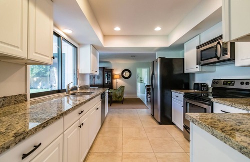 - Spacious condo with views of oak canopy, gardens & pool. 5-minute walk to beach.