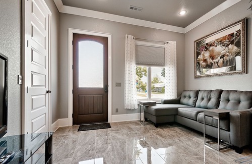 One bedroom, one bath fully furnished ground floor apartment, NOT the entire townhouse, one block off the Bentonville Square & next door to the Ledger & Hilton Motto. The best location available in downtown Bentonville! Walk to all of the events going on around the square or any of the fine dining options. We reside upstairs.