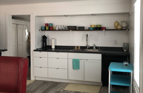 Please enjoy our quaint crooked little 1885 cottage that was the carriage house for the historic house across the road. Updating completed Fall 2019 with new flooring, cabinets, appliances, windows and bathroom fixtures. We are 100 yards from the beach, river and park. Two blocks to great eateries, Shorts Brewery, and quaint shopping downtown. 10 miles to Flintfields Equestrian Park in Williamsburg, or our many inland lakes, and 18 miles to Traverse City.