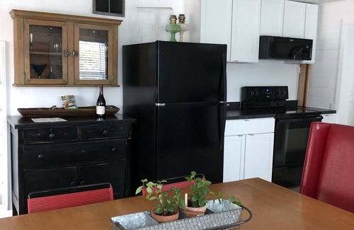 Decorated to inspire with great art and happy colors, the decor is an eclectic mix of styles using old painted furniture and mid century modern. Everything (except the beds and bedding) have come from REclecTia, an upscale consignment store in Traverse City, . There is a huge yard so bring your fun yard toys. The front porch is great in any weather, there is even an electric fireplace to take the chill off if need be. For those who love to cook, the kitchen is well equipped and the gas grill on the back deck could cook up that lake trout or salmon you caught on your charter trip. Equipped with all the comforts to relax and get away! There is a TV, but it is our hope that you will come away from that, and enjoy spending your down time with friends and family and everything our area has to offer.