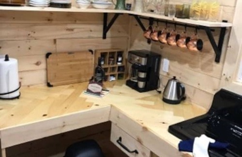 The Cabin has unique and custom features, such as a large black cast iron sink from an old farm house; and custom made pine kitchen, doors, and floors.