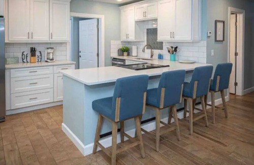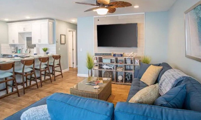 Beach lovers' paradise! Discover your perfect island getaway in this stunning 3BR beach house, just a short walk to the ocean. Enjoy a king master suite, a cozy kids’ room, and an open living space with modern coastal décor. The private backyard features a mini golf green, Adirondack chairs, and a BBQ grill for fun-filled evenings. Fully equipped kitchen, high-speed WiFi, Smart TVs & beach gear included. Pet-friendly with approval!