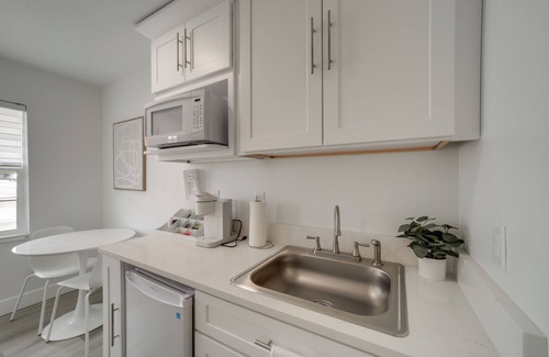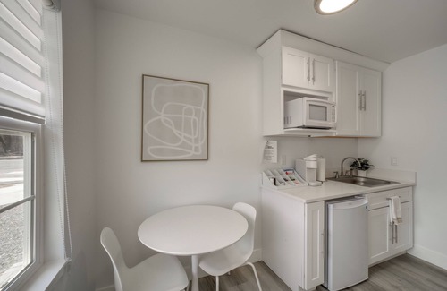 - Microwave, hot plate, mini fridge, Keurig coffee maker