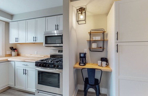 On the main level, you’ll find two serene bedrooms, each with a cozy queen bed, and a third bedroom featuring a twin bed with a trundle—perfect for younger guests or added flexibility. A modern bathroom with premium fixtures ensures comfort for everyone. Downstairs, the private basement bedroom offers a queen bed and an additional contemporary bathroom, creating a perfect retreat for relaxation.