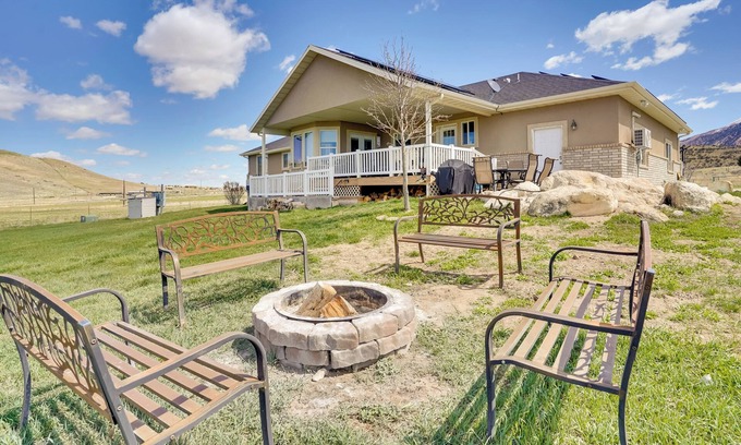 Private Hot Tub | Wood-Burning Fire Pit (Wood Provided) | Mountain Views | Central A/C | 7 Mi to Pioneer Heritage Gardens