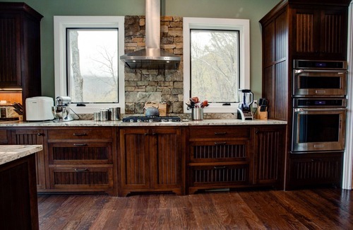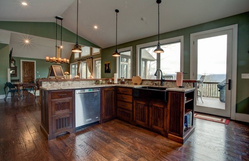 Friends and family will love the way this home was built for entertaining! There's plenty of room for everyone in your group with Sticks & Stones' multiple gathering areas, including a large living area equipped with a central stacked stone fireplace with plenty of comfortable seating to gather, converse or enjoy the big game. The spacious dining room opens out to a towering deck equipped with plenty of outdoor seating and a gas grill. Plus, the covered screened porch provides a space for rain-or-shine rocking chair relaxation. Enjoy the ease of family cooking in the fully equipped chef's kitchen with a center island and tons of granite counter space. Wherever you choose to kick back, there's secluded views from nearly every room in the house!
