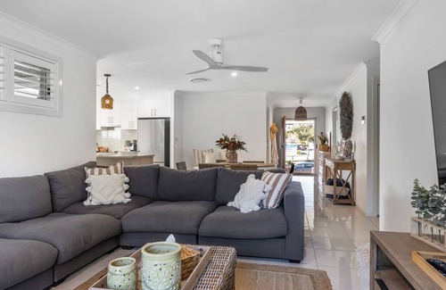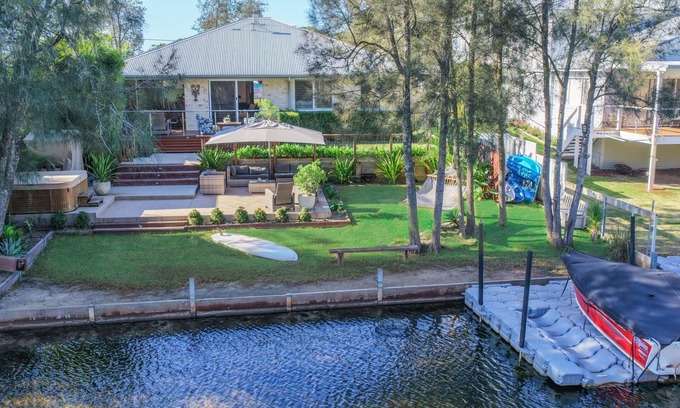 Tucked away in a peaceful cul-de-sac and backing directly onto the Myrtle Gully waterway, this spacious single-level home offers the ultimate in relaxed Lake Conjola living. With four well-appointed bedrooms, light-filled interiors, and open plan living that flows effortlessly to multiple outdoor spaces, this property is perfect for families or groups seeking comfort, space, and a prime waterfront location.