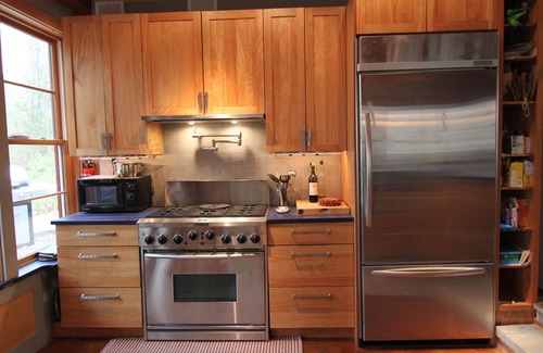 Timber frame house with radiant heating and cooling, healthy, quiet place. Located on the Saco River, with views to the water, a dock. Swim, canoe, kayak, boat on the Saco River. Modern, full service kitchen, open spaces and balcony with views to the river. Easy access to beaches, exceptional dining in Portland, nearby golf course.