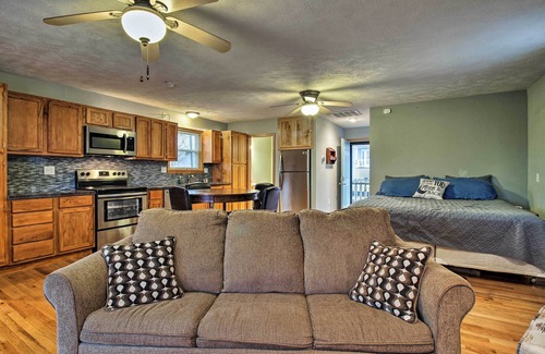 Explore the clear waters and the outdoor paradise of Stockton Lake while staying at this updated vacation rental studio. Start your mornings with a big breakfast and coffee made in the fully equipped kitchen, then spend the day on the lake where you can soak up the sun, catch some fish, or layout on the swim beach with friends. Hike the miles of wooded trails at Stockton State Park and find your solitude before returning home for a meal and a movie night with your favorite picks on the Smart TV.