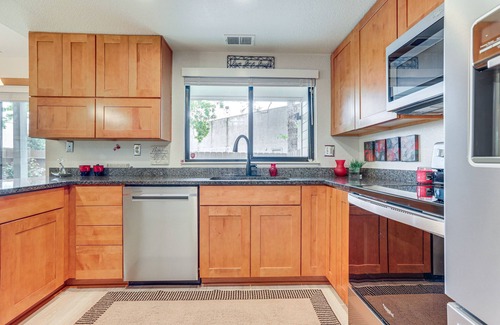 You can't beat a 6-mile commute, a dedicated workspace, and home essentials — like a full kitchen and in-unit laundry — so look no further than this Stockton, CA, vacation rental for your next extended stay in the Golden State! The 1-bed, 2-bath townhome is perfect for traveling nurses, with a cluster of hospitals a short drive from the property. Head downtown to Adventist Health Arena for live entertainment after your shift, then get some well-deserved rest on the tranquil, private patio.