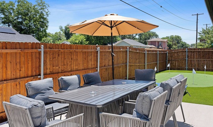 Enjoy your stay at this single story cornered home with many amenities and just minutes to Stockyards, TCU, Dickies Arena, Cultural District and many more attractions. The house is perfect for any groups of almost any size to relax and explore. It features with many amenities such as Hot Tub/Jacuzzi, Mini-Golf, outdoor BBQ dining, fully stocked coffee bar, high-speed WiFi, Smart TVs with Netflix, Hulu, and premium mattress for a good night sleep. It will be an amazing experience staying here.