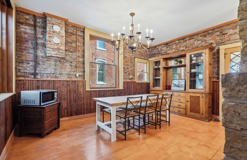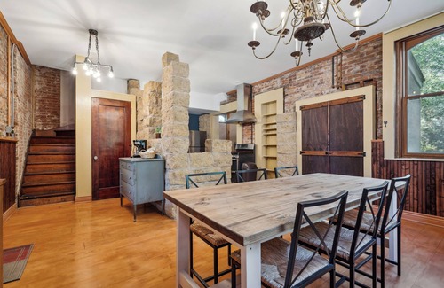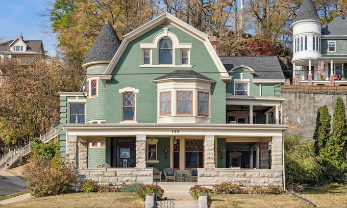 Gather with friends and family in this historic 7-bedroom house in charming Dubuque. This beautiful property features 5 king beds, 1 twin bed, and 3 full beds, perfect for large groups or families. With amenities like WiFi, a washing machine, AC, and a full kitchen, guests will feel right at home. The 5 en suite bathrooms allow guests to have their own private space. We think our place will help you experience everything Dubuque has to offer.
