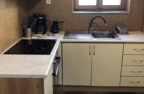Fully equipped kitchen and bathroom with shower.
