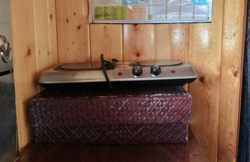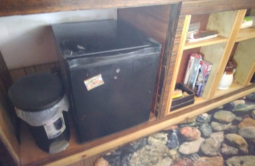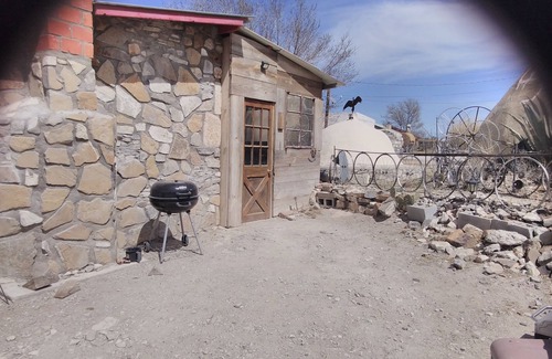 Another structure on our experimental property ,part of pop-up trailer made into a small kitchenette surrounded with local rocks and recycled material , there is only 1 sink in the kitchen.Comfy with basic amenities. Step outside, climb to a "Space deck" to watch the stars.