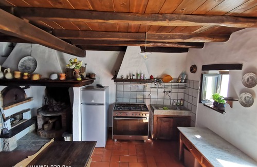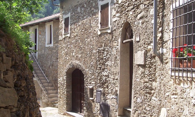 The residence, the so-called "Ca du maxin" ( "miller's house"), is a unique in its architectural style: it has two bedrooms, a bathroom, a kitchen with a dining room, a large living room with fireplace and two beautiful terraces . The house can accommodate four / six people. "Ca du maxin" is situated in the historical center, with great views over the village and the surrounding mountains where silence imposes its presence. The residence can not be reached by car because of the typical narrow lanes (alleyways), but we offer a free storage service from the car park just outside the village. The house can be rented for at least one week (€ 400-600 per week).