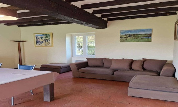 Enjoy a peaceful countryside escape in this charming stone house, nestled within a historic agricultural estate just 7 km from La Flèche and 45 minutes from Le Mans. Surrounded by nature and heritage, this warm and welcoming home is ideal for families or friends seeking a relaxing and authentic retreat. The house accommodates up to 8 guests across four double bedrooms, including one on the ground floor. A cozy living room with TV and Wi-Fi, a fully equipped kitchen, and a spacious bathroom with both shower and bathtub ensure comfort throughout your stay. Bed linen, towels, and a washing machine are provided for added convenience. Step outside to a large fenced garden with outdoor furniture and a barbecue—perfect for al fresco meals and quiet afternoons. The estate features scenic walking paths, a stream ideal for fishing, and a 13th-century chapel classified as a historic monument, offering a unique and tranquil setting. Guests benefit from 24/7 concierge services by Rêve au Mans, including breakfast delivery, private chef, grocery shopping, and more. Whether you're here to explore the region or simply unwind, this countryside retreat offers a perfect blend of comfort, charm, and heritage.