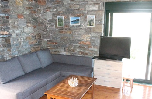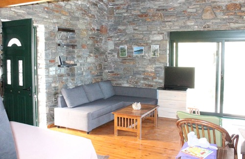 Stone House is situated in the traditional village of Petries in Evia, only 2 hours away from Athens. The green of the mountain combined with the blue of the beautiful Aegean sea makes it the perfect choice for your holiday vacation. To Petrino is one of the twin stone houses in a green field. It is 5-10 minutes far from several wonderful beaches like Heromilos, Klimaki etc. It is perfect for family vacation. It includes air-condition in both floors and a free parking place within the property. More: kitchen, fridge, coffee maker, clean sheets and towels as well as shampoo and body wash for your bath. Do not hesitate to ask for a baby cot for your baby. Furthermore, you can freely use the barbeque. ΑΜΑ 00000695577