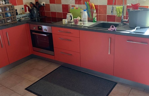 Open, new kitchen with dishwasher, induction stove, oven, microwave, fridge freezer and small appliances (coffee maker, kettle, toaster, blender ....), table and chairs for 4-6 people.