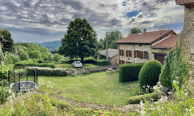 This charming 90m² stone house is located at the end of a small, quiet hamlet, on the edge of the woods. It offers absolute peace, with a clear view (a stunning sunset over the Puy de Dôme and Clermont-Ferrand, just 100 meters from the house). Facing south, it stays cool in the summer, and opens up to a private, enclosed garden with no overlooking neighbors. The house has all the necessary comforts for a relaxing vacation, surrounded by nature. Walking trails are immediately accessible from the garden.