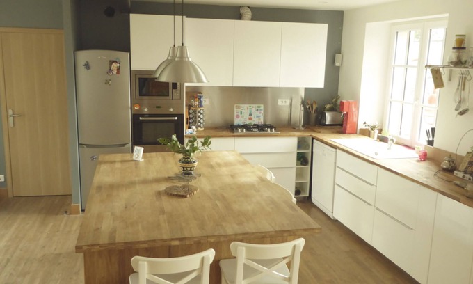 The house has just been renovated by combining the charm of the old (beams, stone walls ...) and the advantages of the modern (tv, internet, integrated kitchen with central island, washing machine ....).