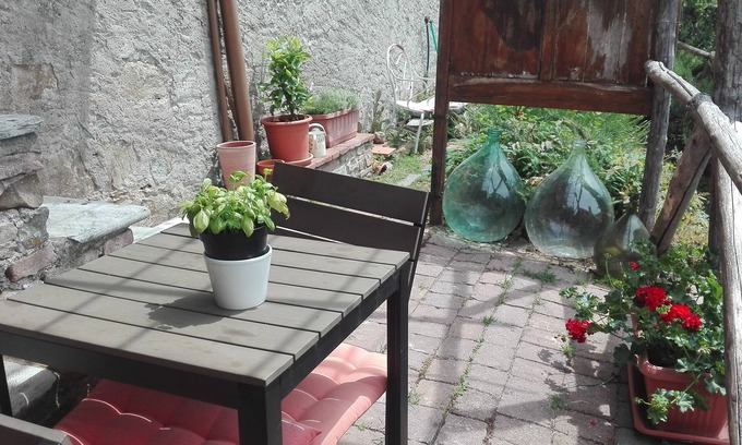 The garden is characterized by multi-level rocky walls full of walking paths with beautiful flowers, pots of herbs and vineyards covered with pylons. Here we can experience that delicious feeling of "old Italy" that every tourist wants. Sitting outside in one of the many benches writing or reading ... This would be a perfect place to spend a month or more for a writer, painter or anyone looking for beauty or a place to think and be creative. Boveglio is a delightful medieval village where Casa Sotto la Torre is located, it can be reached by car driving north for 15 kilometers on the narrow, SP 55 of Collodi or south for 10 km on the SP 55 from Bagni de Lucca. The house is located on the SP55 just at the northwest entrance of the village of Boveglio. There is a bus service to and from, but a car is probably needed. We found two good restaurants and a small but well-stocked grocery market in a village called Benabbio, 5 kilometers north of Boveglio. We loved this place and when we come back we stay longer.