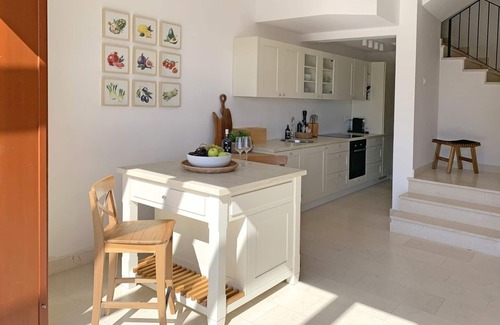 It is set up on 3 floors connected by internal staircases, and it consists of kitchen with dining and living room, storage room with fridge and wine cellar, 3 double bedrooms, 1 bedroom with single from which additional bed may be pulled out, 2 bathrooms with shower, and one additional toilet.