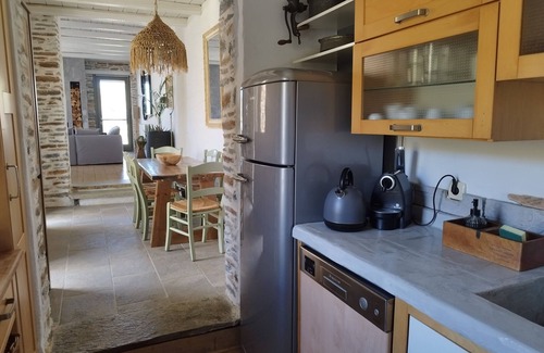 Entering the house you will find the indoor dining area and on the right the kitchen, which is fully equipped to cook and make coffee, while the dishwasher will take care of all the hard work after your meal.
