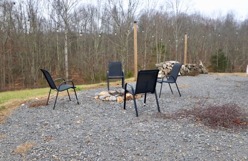 Outside the cabin, there is a high table with two chairs to have morning coffee at while you watch the sunrise or have some smore's or make some hotdogs over the fire! We have Adirondack chairs for you to sit in and all the firewood you need to keep the fire going all night.