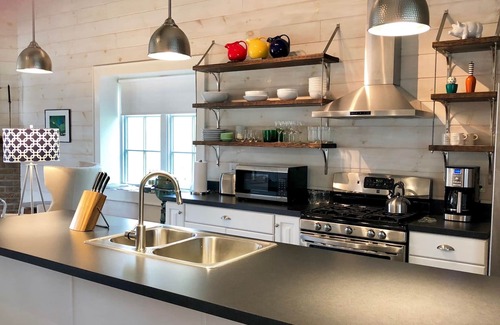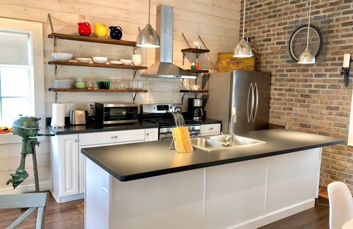 We love our bungalow, tucked away off the main street in downtown Lewisburg. Formerly a spacious carriage house, it's been completely rebuilt from top to bottom with an open concept living, dining and relaxing area with 14’ ceilings; two large comfortable bedrooms with walk in closets; and a separate laundry room. Special touches throughout will make you feel very much at home. It’s the perfect place to enjoy the best of Lewisburg!