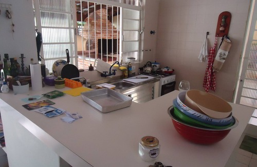 Slab house with high ceilings and sloping, ensures excellent lighting and ventilation, ceiling fans in all rooms, tiled floors and easy to maintain, four bedrooms and three suites and a bathroom, a balcony with integrated living room and kitchen, two bedrooms in the back of the house and two suites in a comfortable 'cottage. Large garden with terrace (200m2) space to house several vehicles, deck and garden shower. Furniture masonry allows convenience and ventilation, producing no mold or fungus. Slate floors and ceramics, allowing easy maintenance. Two refrigerators, one in the kitchen and another in the Service Area.