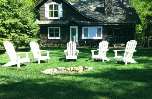Aside from its own private secluded beach and dock, Runamuk’s grounds include a fire-ring located near the water’s edge, lawn furniture, bench swing, gas grill (we provide the propane), canoe, and life jackets, swim raft, flagstone patio with picnic table, etc. We’ll even provide the firewood so you and your group can enjoy a charming camp-fire.