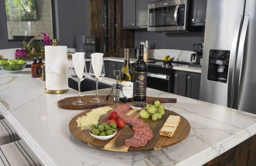Relax in the sparkling pool and spa or gather around the custom-built firepit for unforgettable evenings under the stars. The expansive outdoor kitchen is ideal for al fresco dining, while the kids enjoy the private playground just steps away. Whether you’re here for a family getaway, a romantic retreat, or a special event like a small wedding, Enchanted Forest Castle provides the perfect backdrop.