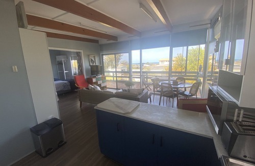 STRAIGHT TO THE POINT is a comfortable upstairs living holiday home that accommodates up to 4 guests with only a short walk to the beach, sea views from balcony, dogs welcome!