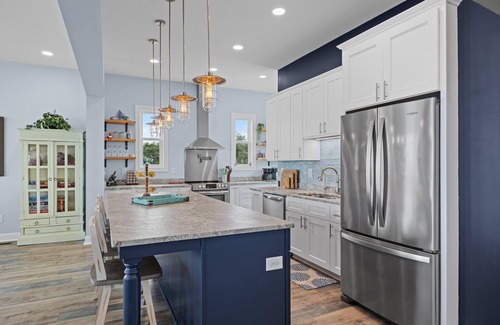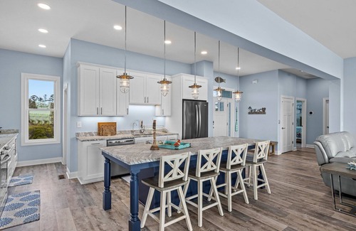 Dip your toes in the water at Straits Serenity! This newly constructed coastal home offers expansive water views from every porch and window. Nature lovers will relish the variety of marine life, including egrets, pelicans, dolphins, and boaters. The contemporary design features a modern kitchen and spacious living area with a fresh, open feel, perfect for fostering conversations and easy movement among guests.