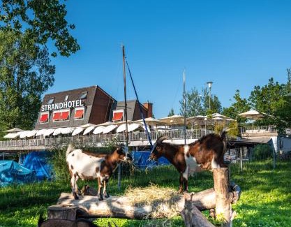 The Strand hotel in Schmerikon is located in a fantastic location directly on Lake Zurich. The accommodations has its own small beach, which is reserved for hotel guests only. All rooms have a view of the lake. The Bungalow Suites and the Deluxe Apartment have an outdoor seating area with sunbathing deck or balcony. In the restaurant, we serve our guests a breakfast buffet with fine, fresh products from the region. The restaurant and lakeside terrace are open to the public throughout the day. We serve lunch and dinner.