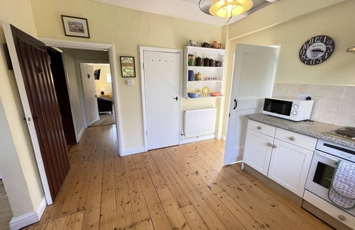 Fully Equipped Kitchen: Prepare meals together in the well-appointed kitchen, which boasts an electric hob, oven, and plenty of dining space for eight, ensuring you can celebrate over shared meals as a group.