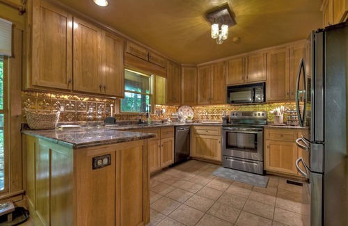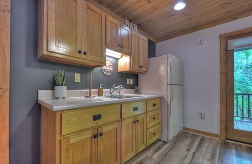 Tucked among the trees in beautiful Ellijay, Georgia, Streams and Daydreams is a relaxing retreat in North Georgia. Conveniences abound, starting with the large, flat, paved driveway. Then step inside to cozy up on the plush sofas with a fireplace and flatscreen TV. Whip up meals in the fully equipped kitchen, gather around the dining table, or have fun in the game/lounge with a pool table, dartboard, wet bar, kitchenette, flatscreen TV, and comfy seating.