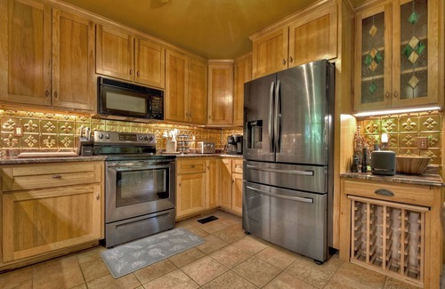 Outside, enjoy a soothing hot tub, a grill, a picnic table, and sprawling decks that offer sunny and shady spots to relax. Additional amenities here include nice bedrooms, lodge-like décor, a peaceful nearby stream, a washer/dryer, nearby fishing, and easy lake access. Plus, it's pet friendly!