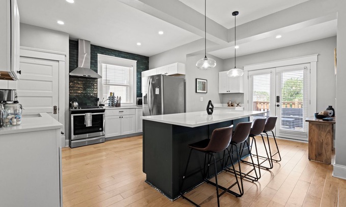 Welcome to our high end historic home in KC! This whole property blends American comfort with trendy fashion, ideal for any length of stay. Located only minutes from local attractions and restaurants, it's the perfect spot for exploring the city. With spacious living areas, large bedrooms, and a full kitchen, it's great for the whole family. Enjoy the convenience of keyless entry and easy access to public transportation. Also enjoy the back deck & front porch. Book now for a memorable stay!