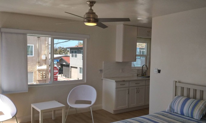 Mission Beach studio apartment. This unit may be rented in conjunction with an oceanfront beach house. See VRBO listing 455128.