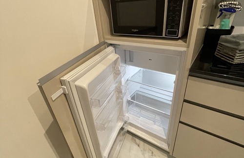 The kitchen is equipped with a stovetop and a refrigerator, as well as a coffee maker, an electric kettle, and a microwave. Connect to the WiFi, or get cozy in front of the TV. Bathroom amenities include a hair dryer, towels, and toilet paper. And there is a laundromat nearby so you can pack a bit lighter. Other amenities at this 1-bedroom, 1-bathroom rental include bed sheets, an ironing board, air conditioning, and heating.