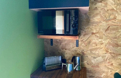 The "Le 4" gîte, twin of the "Le 1" gîte in its layout, is an 18 m² studio designed to offer optimal comfort for two people. It has a fully equipped kitchen area, perfect for preparing your meals independently, and a cozy alcove bed. The private bathroom is equipped with all the necessary amenities to guarantee a pleasant and relaxing stay.