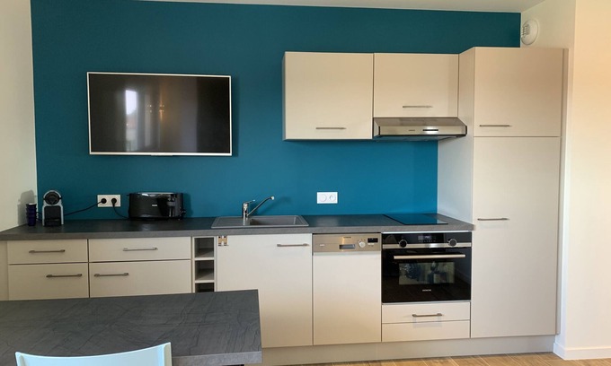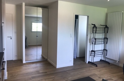 In Brittany, fully equipped studio of 26m2. Location: Cesson-Sévigné, 5 minutes from Rennes. Access bypass (N136) immediate, 50 min Saint-Malo, 50 min Mont-Saint-Michel. In a quiet and residential area, in an architect's property completed in 2018, with a completely independent access. Small private garden and private parking space. New and high-end equipment. The kitchen area: fridge, freezer, hood, oven and microwave combined, dishwasher, Nespresso machine, and all the necessary crockery. The living area: table and chairs, 2 sofa beds (queen size), storage space, desk and TV with Netflix. Screen lights for a cozy atmosphere. The bathroom space: large shower, suspended toilet, basin with mirror. Washing machine. Internet access via WiFi (served by La Fibre d'Orange). Property located in a quiet area of Cesson-Sevigne, near Rennes (less than 5min), with immediate access to the ring road (N136): getaways to Saint-Malo (50min) and Mont-Saint-Michel (50min) simple and fast. Access to the center of Rennes is easily done by car. You can also get there by train from Cesson-Sévigné train station which is 800 meters away.