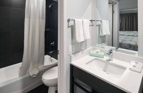Studio 6 Suites San Ysidro, CA -San Diego South Bay offers 119 air-conditioned accommodations with coffee/tea makers and irons/ironing boards. Premium cable television is provided. Bathrooms include shower/tub combinations and complimentary toiletries.