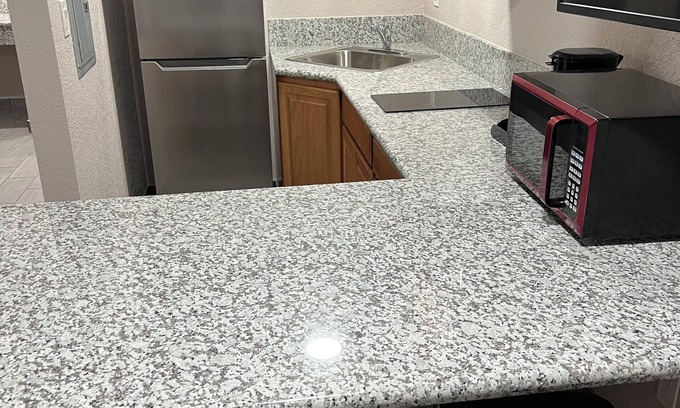 Clean and Spacious Studio Apartment! This is a private apartment with 2 double beds. It includes a small kitchen with an electric cooktop, refrigerator, microwave, and cabinet storage. Kitchenware is not provided to keep our rates as low as possible. We also have onsite staff that can assist with any issues during the stay. If you are staying with us for an extended period, we do have complimentary House Keeping services at no additional cost to you!