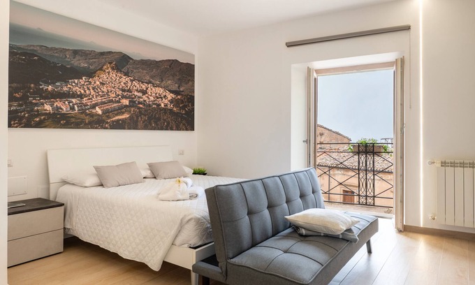 In Mistretta, Studio Apartment 3 offers a great view. Located on the first floor, the apartment consists of a well-equipped kitchen, a double bed, a single bed, a sofa bed for one person, and a bathroom, and can accommodate up to 4 people. Additional amenities include high-speed Wi-Fi (also suitable for video calls) with a dedicated workspace, TV, air conditioning, washing machine, and dryer. The holiday home also features a private balcony, ideal for relaxing evenings.