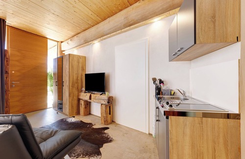 The studio apartment -6-die Sechs, 35qm with step-free access and interior in Rosenfeld is the perfect accommodation for a stress-free holiday with your loved ones. The 35 m² property consists of a living/sleeping area, a fully-equipped kitchen and 1 bathroom and can therefore accommodate 3 people. Additional amenities include high-speed Wi-Fi (suitable for video calls) as well as a smart TV with streaming services. This studio apartment features a private covered terrace for evening relaxation.